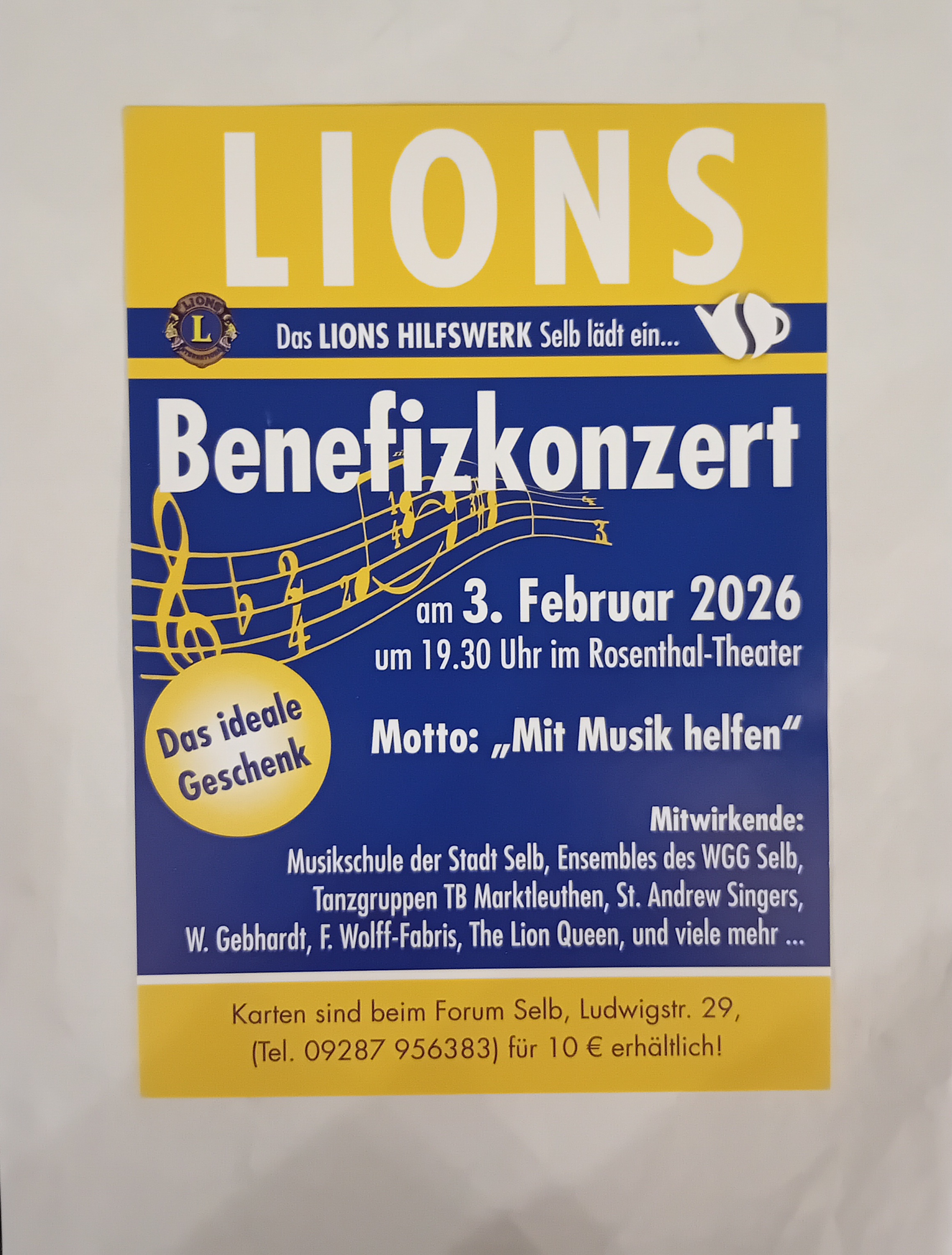 Di 03.02.26, 19:30 Uhr LIONS Benefizkonzert im Rosenthal-Theater (mehr)